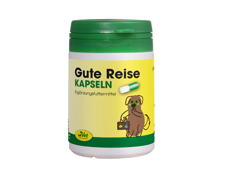 Nuestro producto natural Gute Reise (Buen Viaje) contra el mareo por movimiento fue desarrollado especialmente para perros que sufren los síntomas típicos como nerviosismo, salivación o molestias estomacales. La mezcla finamente equilibrada de probados ingredientes vegetales apoya el estómago y los nervios de su amigo de cuatro patas, de forma suave, bien tolerada y completamente sin aditivos artificiales.